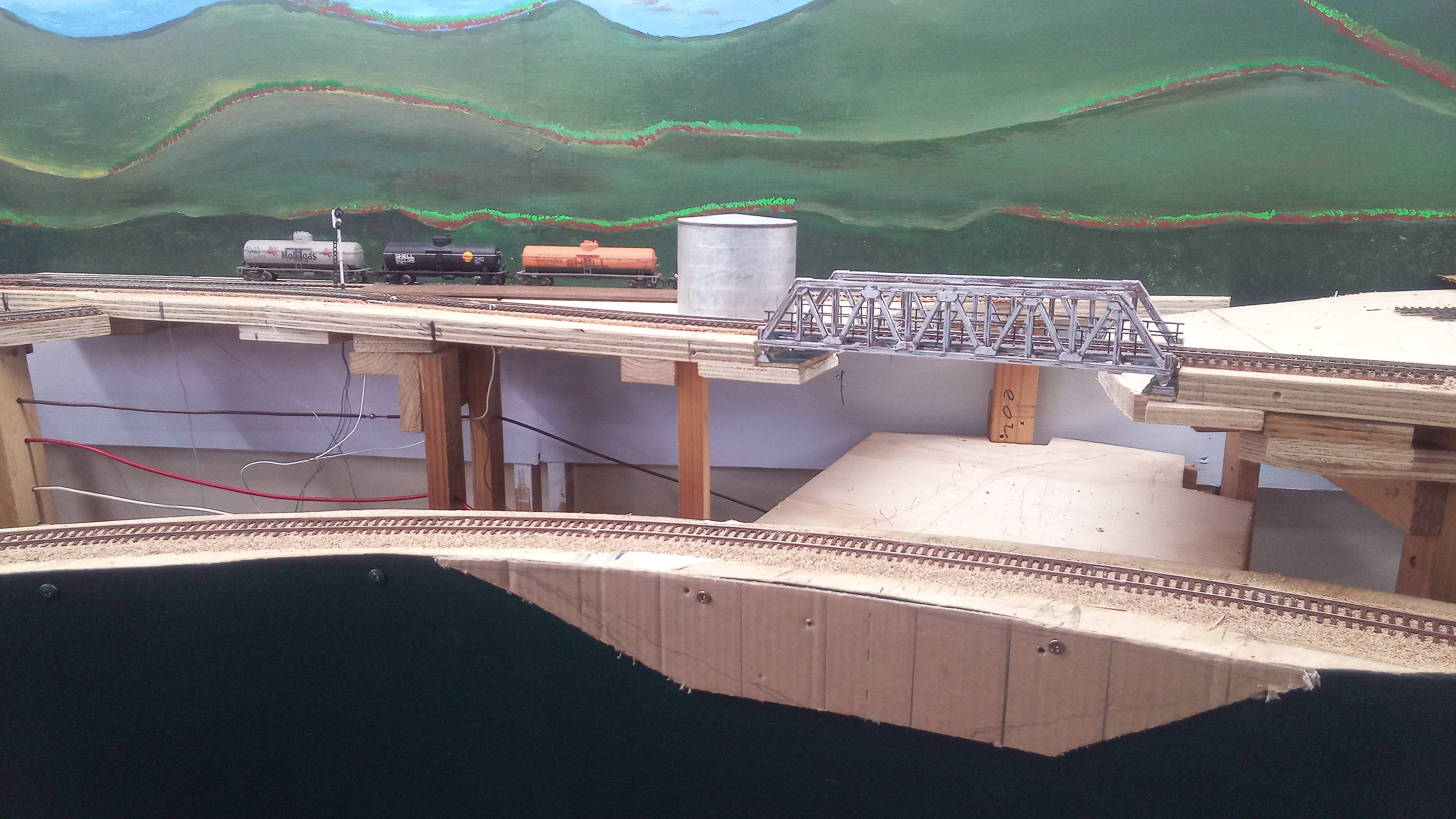 The baseboard has been cut away and the bridge set in place by inserting it from below but not fixed yet, waiting for abutments.