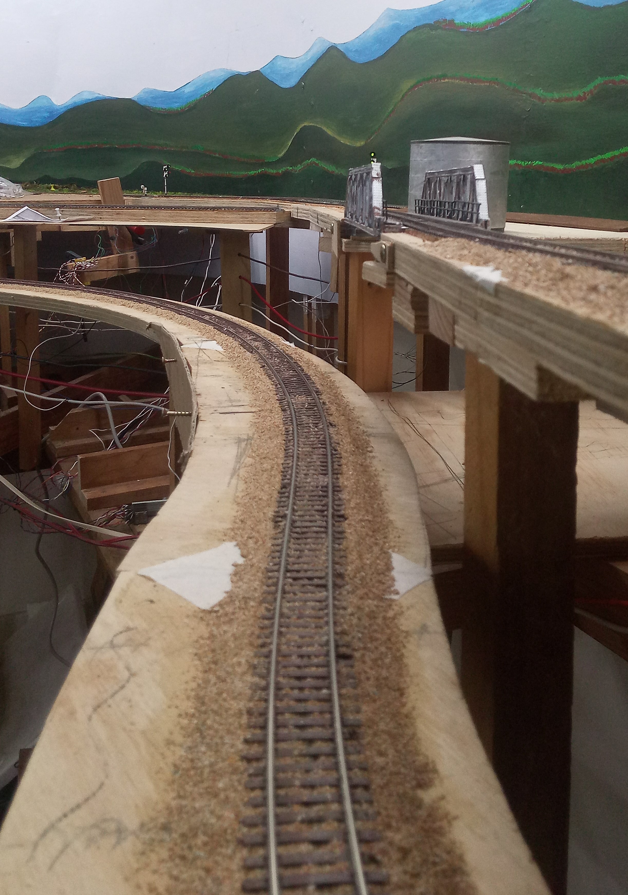 We decided to realign the track to allow for a better scenery arrangement. These tracks are vertically separated but almost side by side horizontally